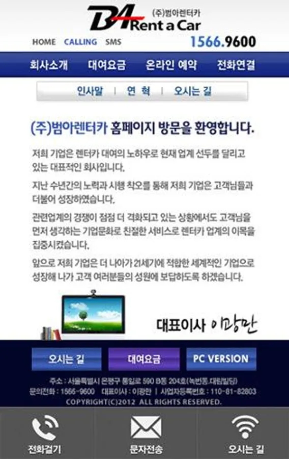관련업계의 경쟁이 점점 더 격화되고 있는 상황에서도 고객님을 먼저 생각하는 친절한 서비스로 렌터카 업계의 이목을 집중시키겠습니다.