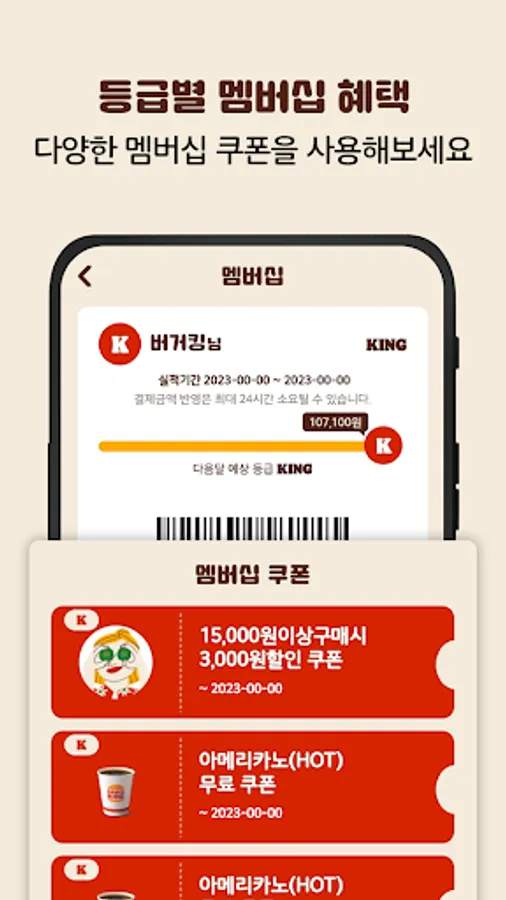 Special coupon for King class only, 3 Americano coupons, 3,000 won discount coupon, birthday coupon!