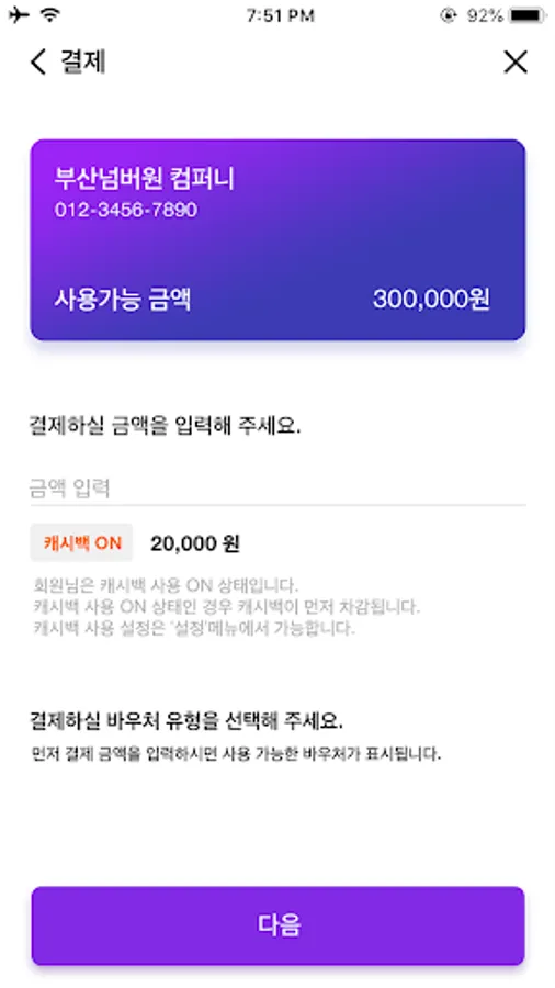 * Cashback will be accumulated only when paying with a purchase (recharge) voucher.