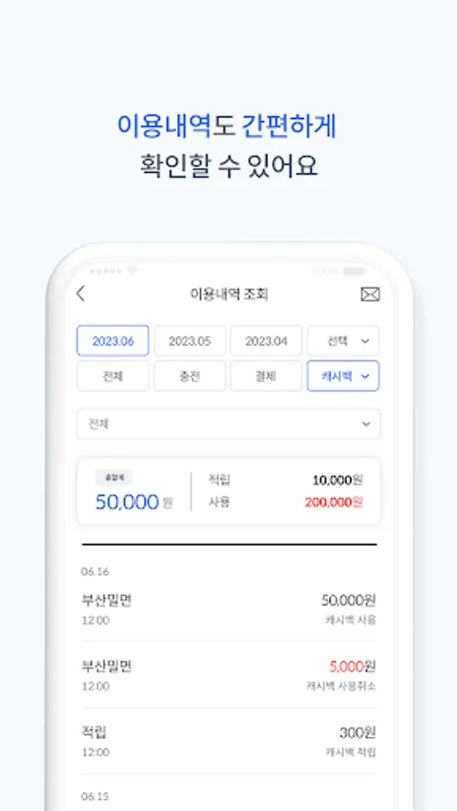 -You can easily top up the amount in the mobile app, and you can check the Dongbaekjeon balance and usage history.