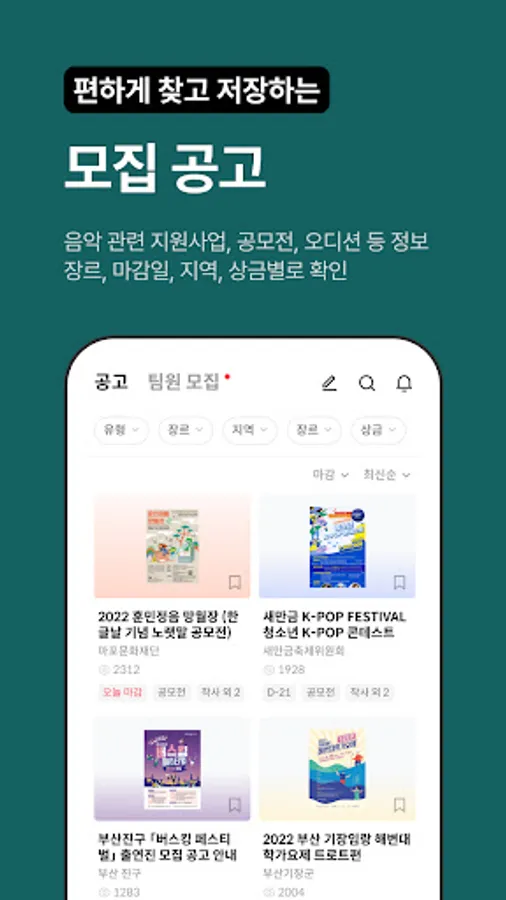 Through custom filter functions such as genre, deadline, region, prize money, etc.
