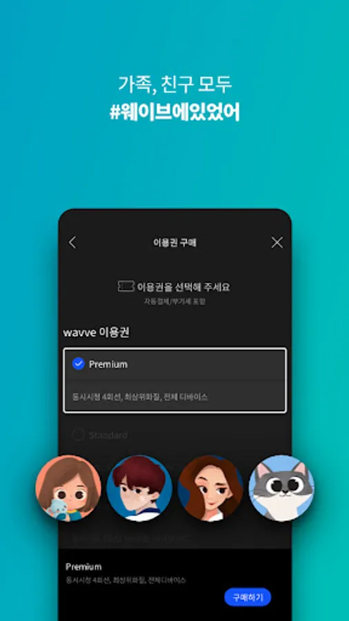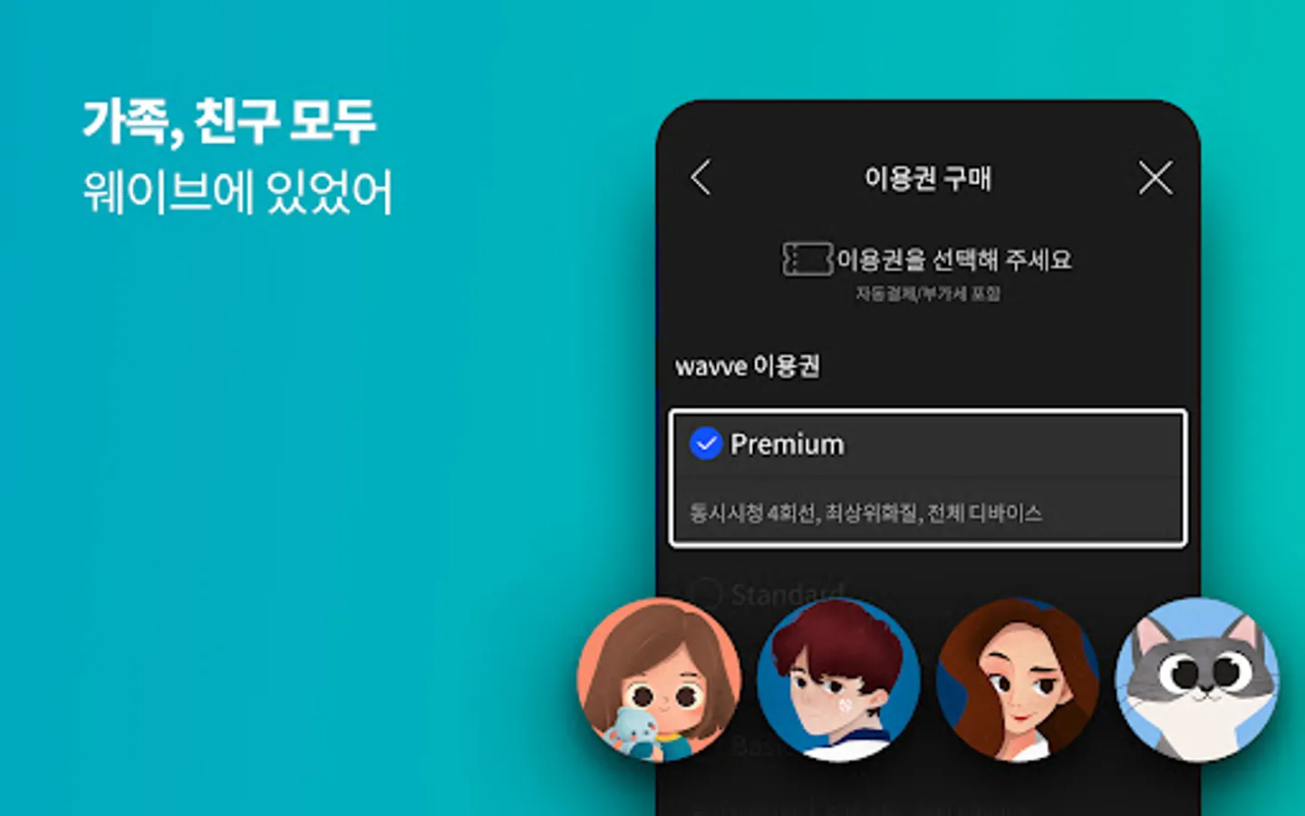 최대 4명 동시접속 상품으로 가족, 친구들과 함께 웨이브에서 만나요!