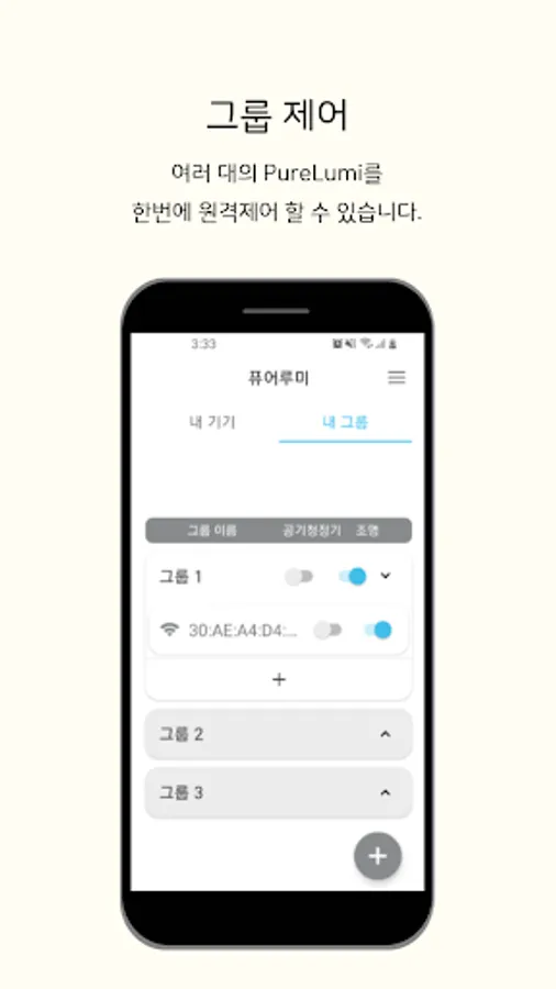 With the PureLumi application, you can connect and control devices quickly and easily. You can remotely check and control the status of devices registered on the server from the outside.
