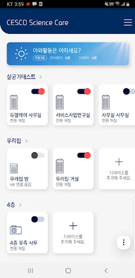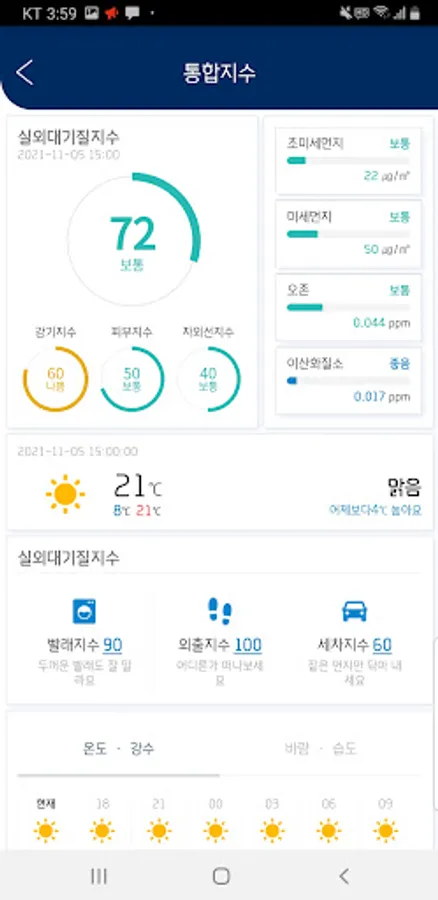 You can check the weather information and outside air information of the area where the air purifier is installed.