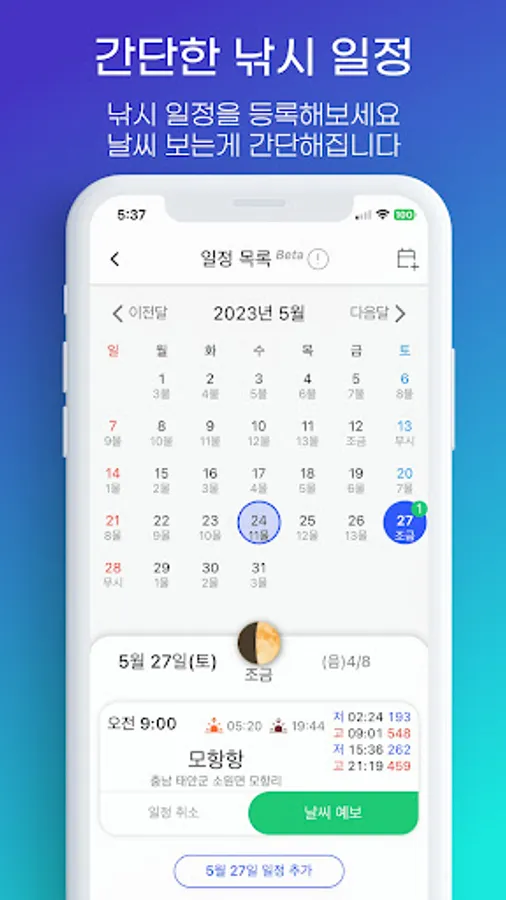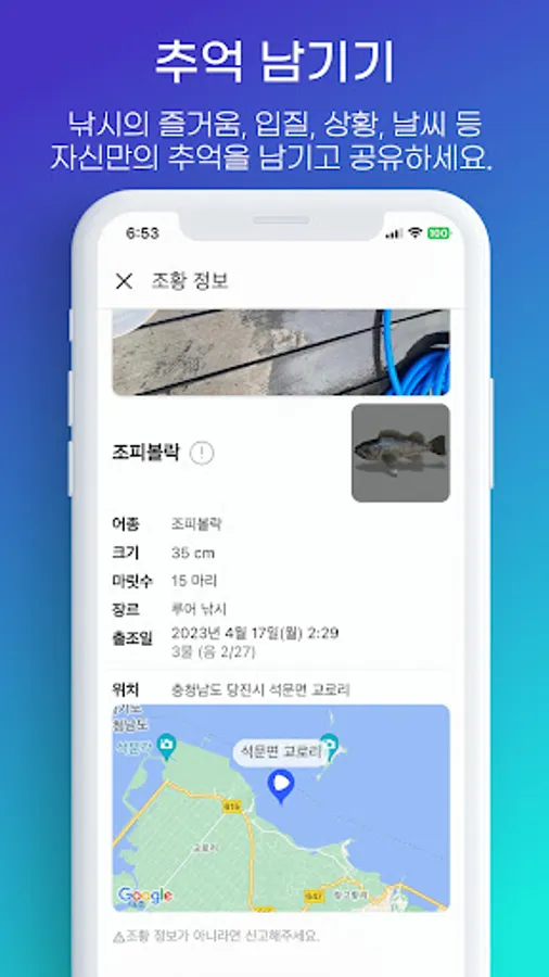 · Check the weather conditions and tide information through the app, and enjoy fishing in ideal conditions.