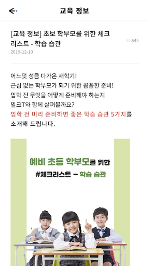 Milk T provides all the learning status of infants/elementary/middle school/high school children.