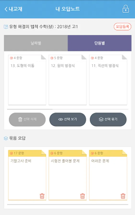 2. Select and register the incorrect answer questions from the registered textbook.