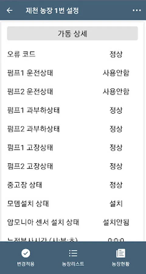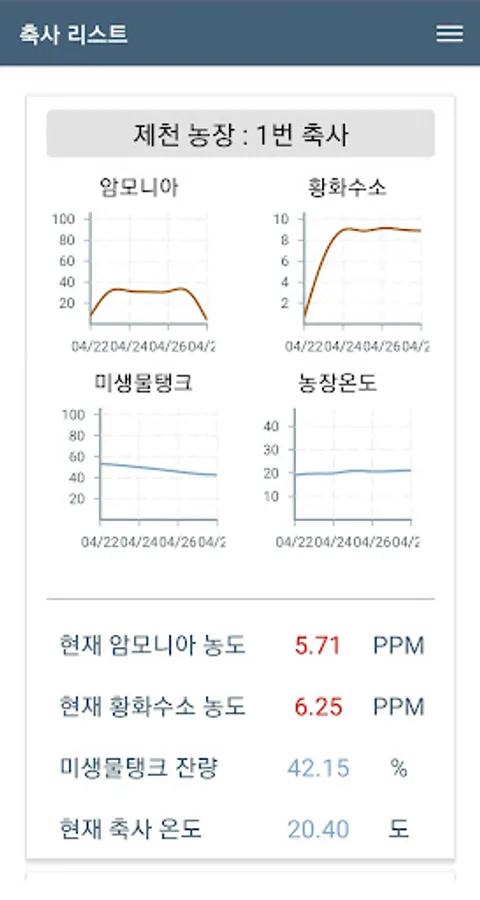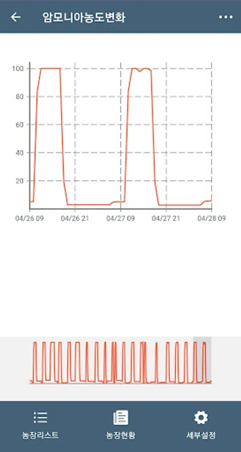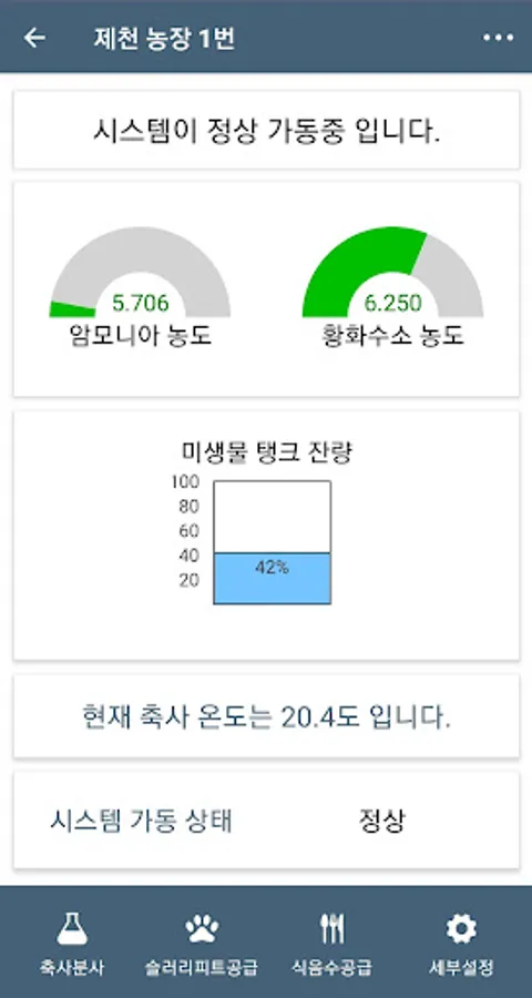 It is a screen to check the current status of the farm. Real-time data is automatically updated. You can monitor trends in ammonia / hydrogen sulfide concentrations, culture medium residuals, and temperature data.