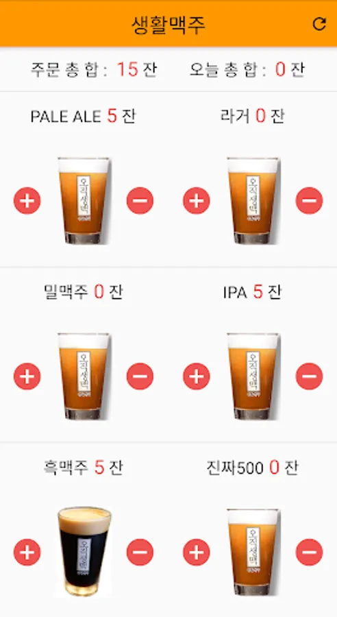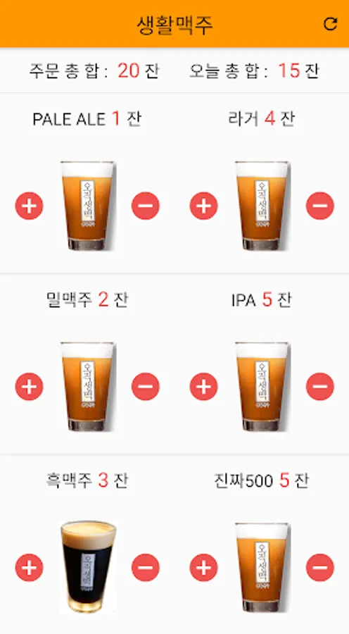 If you click the refresh button on the upper right, all the cups are reset to 0 and the number of cups ordered today is recorded.
