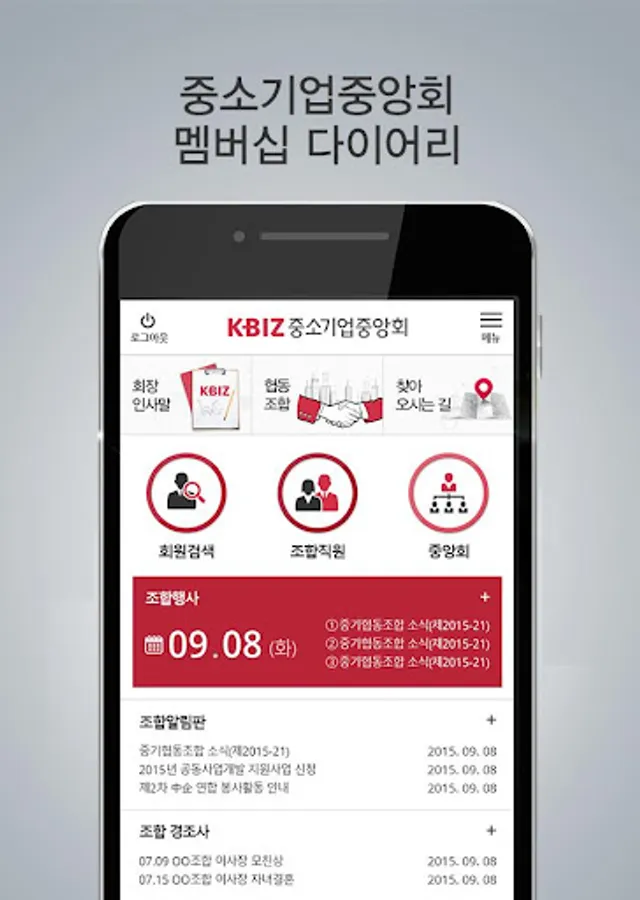 Korea Federation of Small and Medium Business Federation is a member handbook Member combinations and applications that can view the information of employees.
