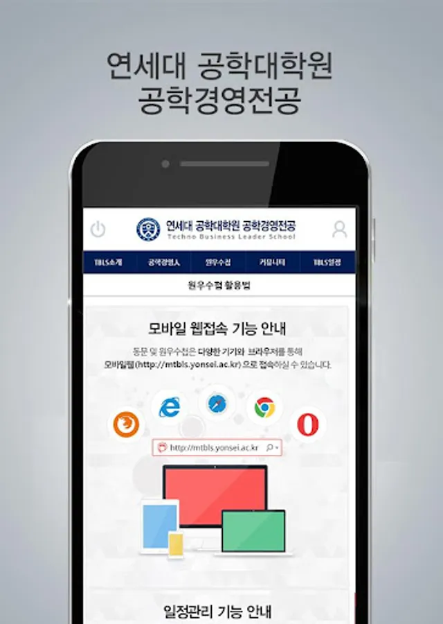 연세대학교 공학대학원 공학경영전공 모바일전공수첩은 동문,원우 및 교수진만 이용 가능하며,