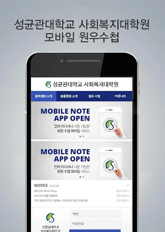 성균관대학교 사회복지대학원 재학생 및 졸업생 원우들의 정보를 열람할 수 있는 원우수첩 어플리케이션입니다.