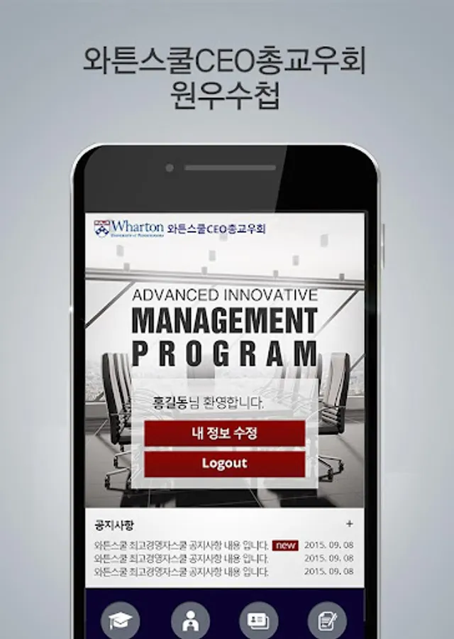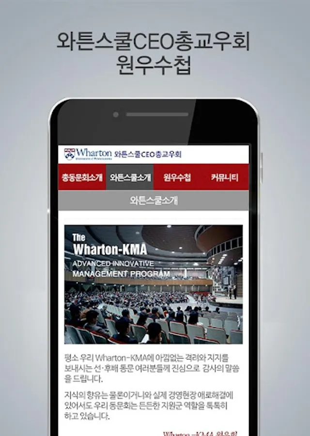CEO and Wharton graduates only available, all data used in Wonwoo handbook is managed directly by the Wharton Alumni Association CEO total. If you have any questions in connection with this application, please contact the Wharton Alumni Association CEO total. Thank you.