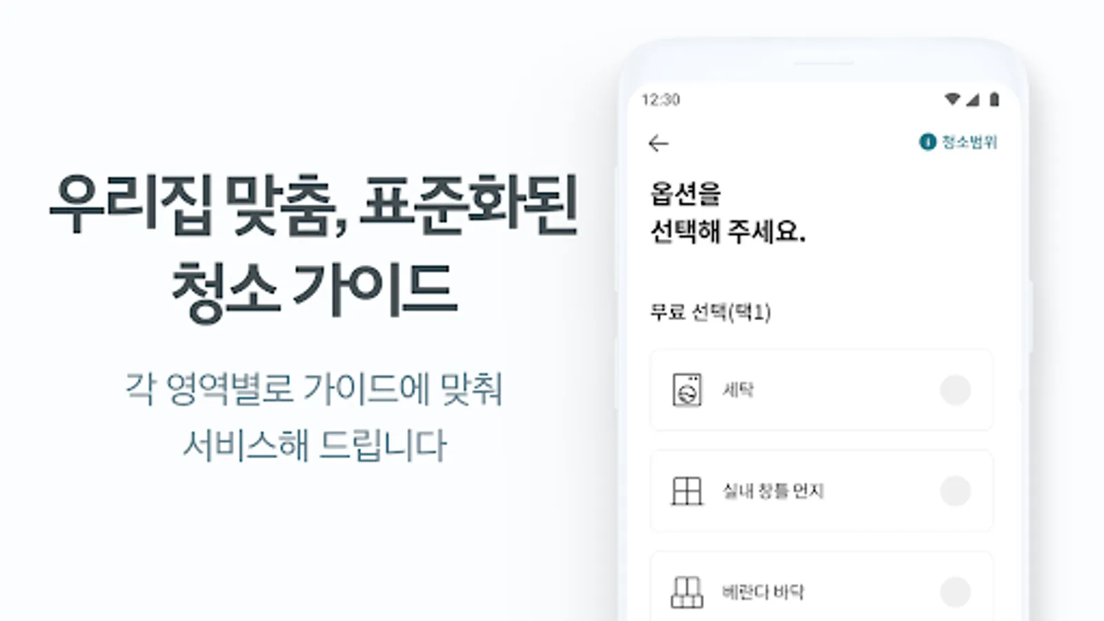 You can use the one-time or regular home cleaning service by selecting a convenient time and schedule in the app, and all progress is notified through KakaoTalk and the app.