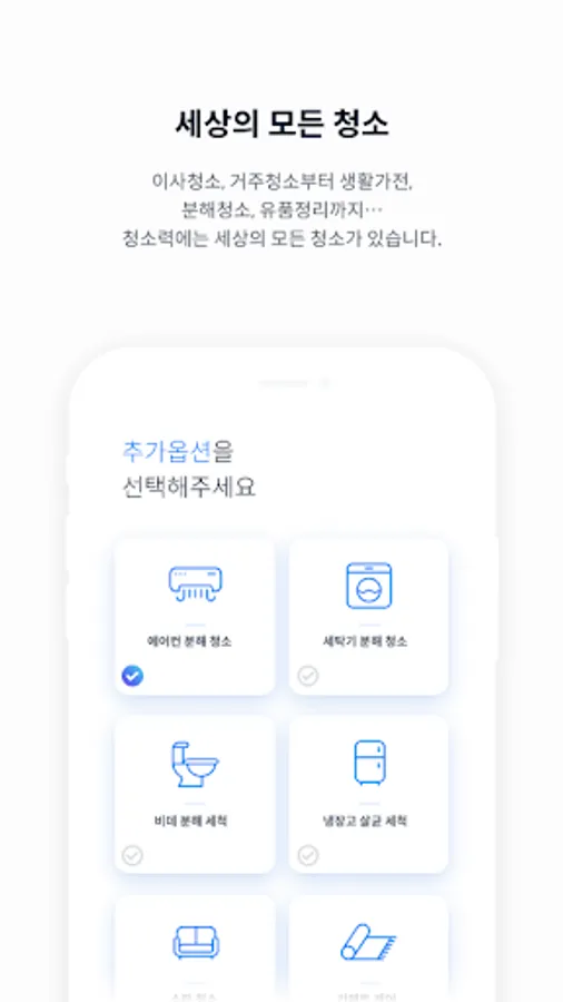 부가서비스 : 욕실유리막코팅, 스티커제거, 싱크대상판연마코팅, 피톤치드, 오븐내부청소, 식기세척기내부청소