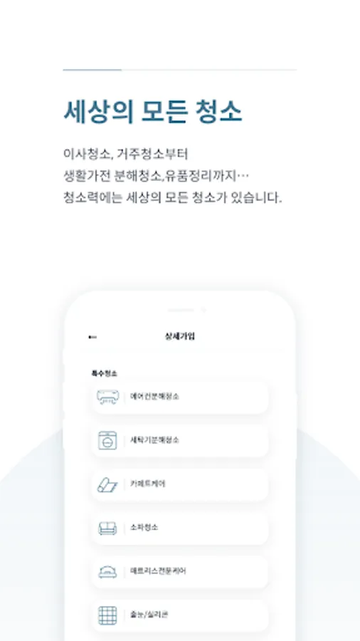All the cleaning and cleaning power in the world is a mobile intermediary platform that connects professional cleaning teams and customers. When the customer requests the desired time and space and the desired type of cleaning with a smartphone, the cleaning team submits his / her quotation, and the customer selects the cleaning team based on a comprehensive consideration of the quotation and customer rating.