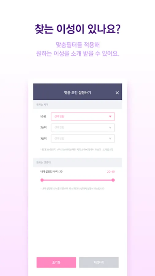 Apply the conditions of the opposite sex you want to be introduced to, such as age, region, and distance.