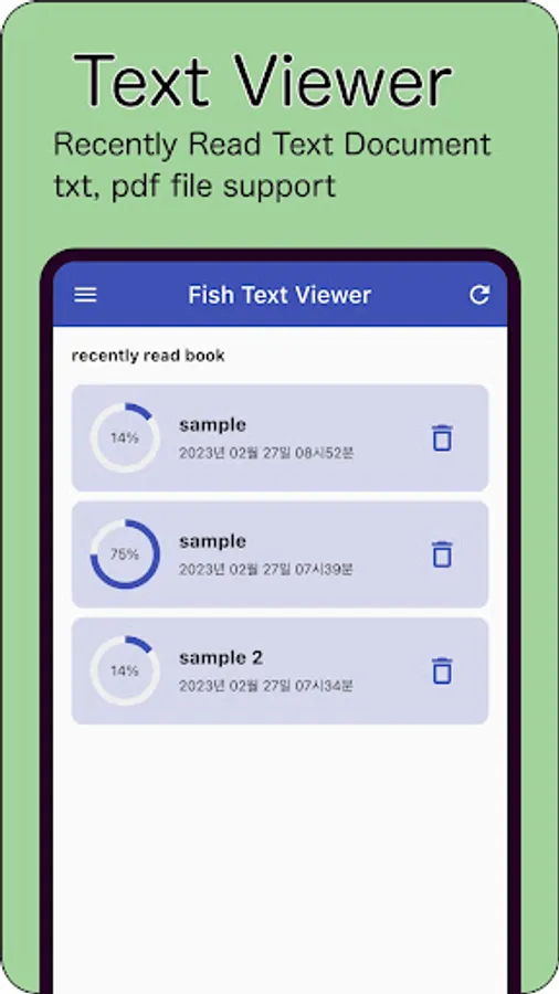 Fish Text Viewer loads text (txt) files and PDF files, and divides the entire text into pages for easy reading.