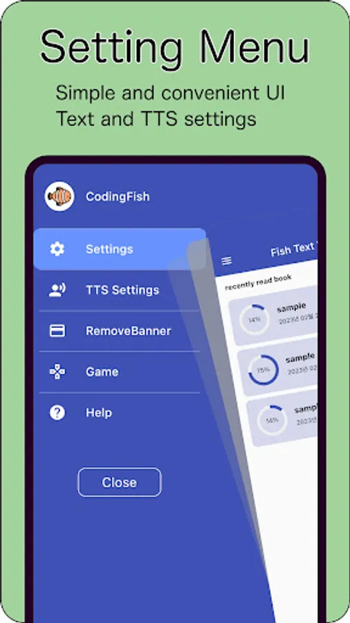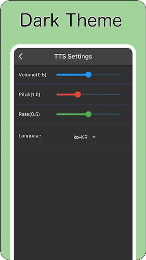 * TTS settings - You can set the volume, pitch, speed, etc.