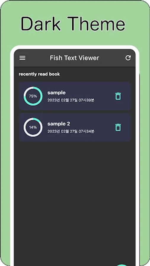 - Recently read books are displayed in order of recent reading, and information such as progress rate and last reading time is displayed.
