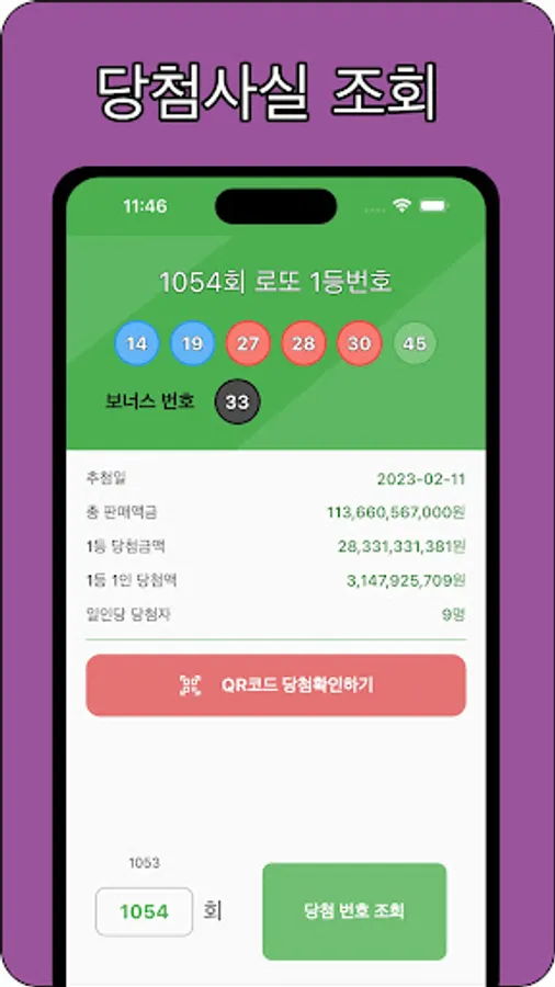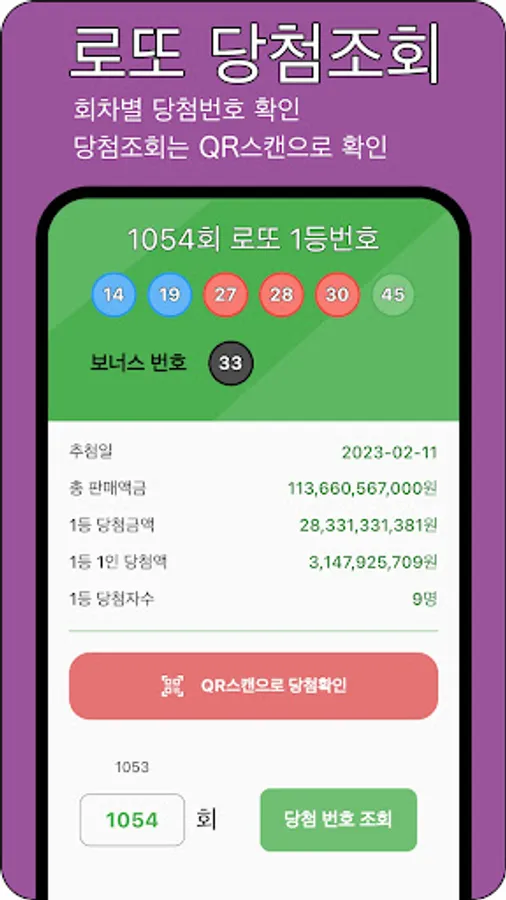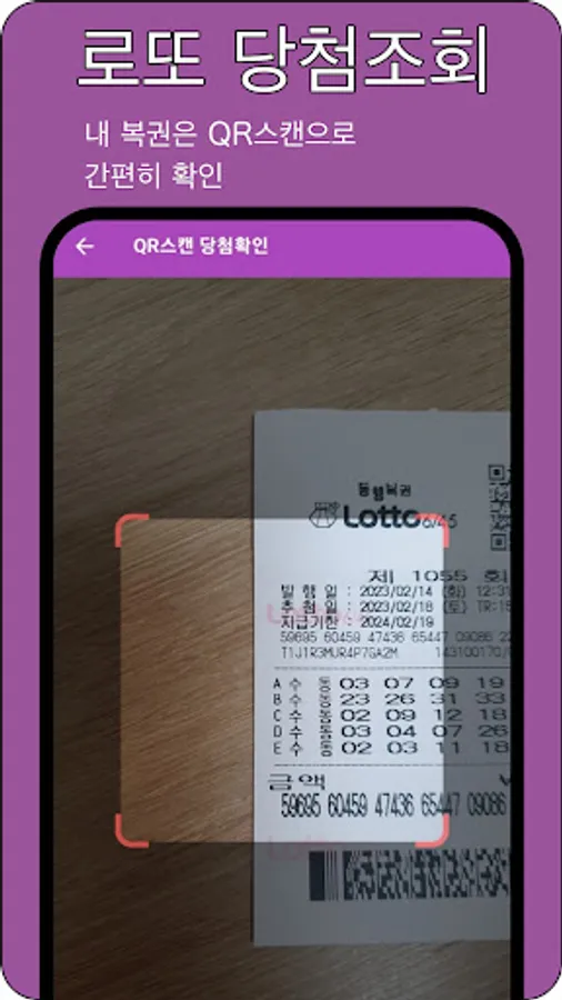You can check the winning number immediately by recognizing the lotto lottery ticket as a QR code, and you can check the lottery winning number for each round and check the winning information such as the prize money and the number of winners.