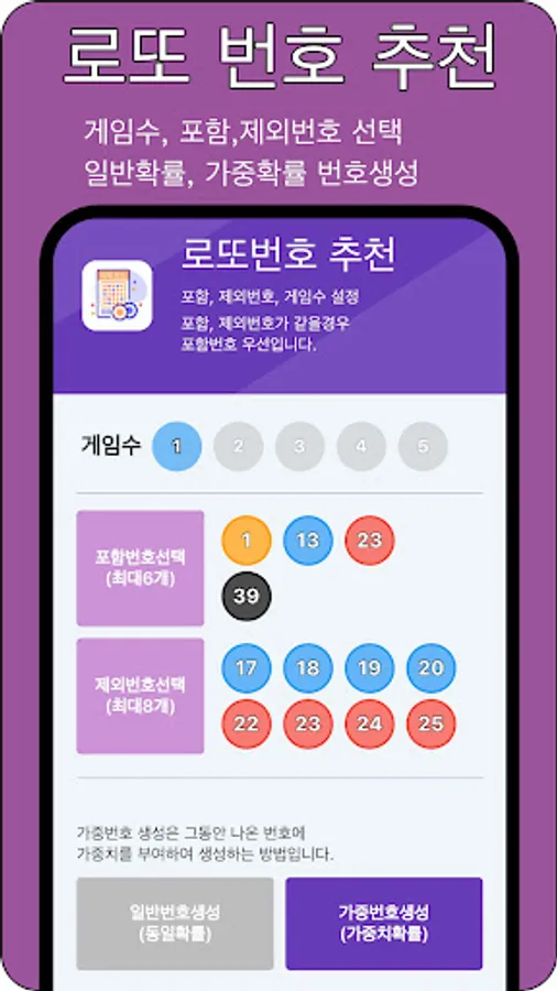 - You can get recommended lottery numbers by setting from 1 to 5 games.