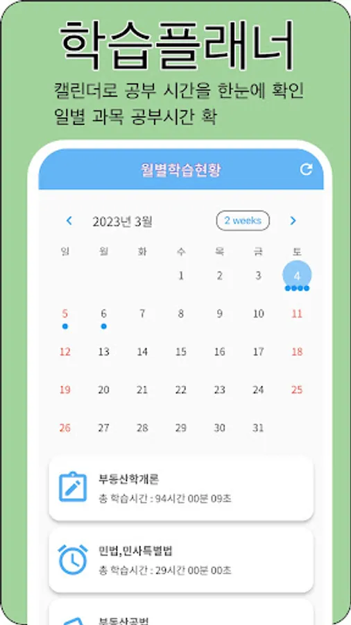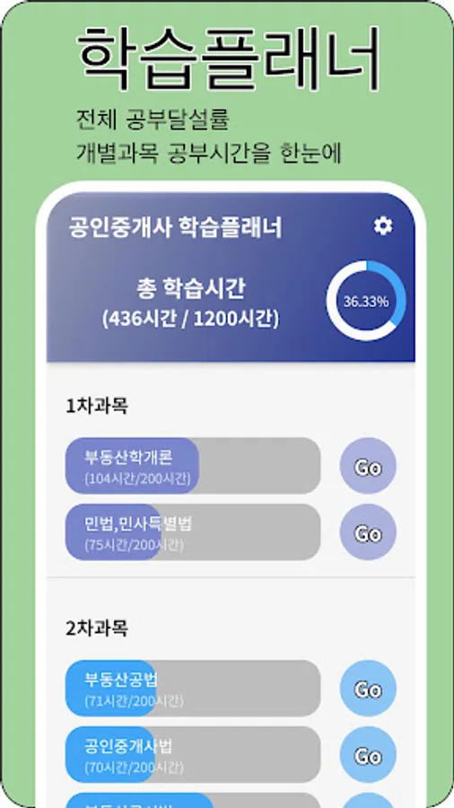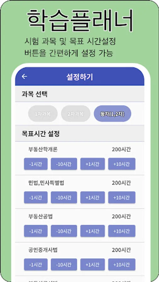 [Fish] Certified Real Estate Agent Learning Planner application is an app that helps you pass the Certified Real Estate Agent Certification Exam by setting the study target time for the first and second subjects in preparation for the Certified Real Estate Agent certification exam, recording and saving the study time, and managing the target achievement rate.