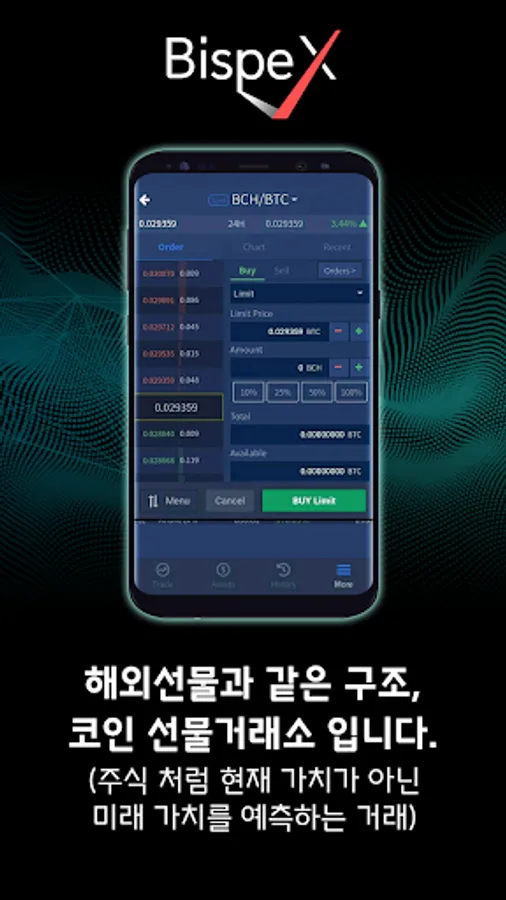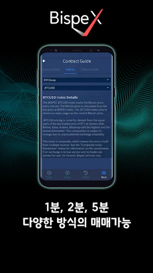 Bispex is a futures trading product that has no illegal elements due to the flow of real currency.It is a trading system that leaves margins only in Bitcoin.The transaction is 1 minute, 2 minutes, 5 minutes. The market price is determined and the transaction is made. It is not a few seconds of trading at a specific time, but it is possible to set a point of time to enter the investment by setting the point of time you want to trade, and the yield is 90%. 90% of the profit rate of 9000 won is achieved