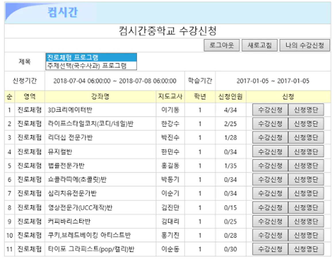 When the teacher opened the courses to receive student enrollment is a program where students can apply to attend the Register.