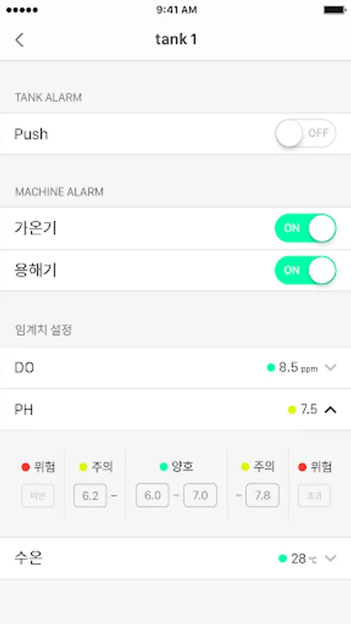 2. Threshold setting and ON / OFF function for each tank