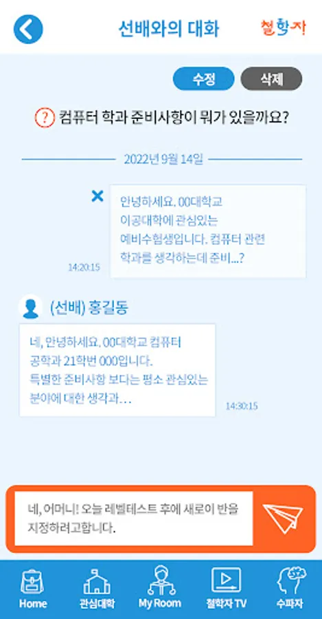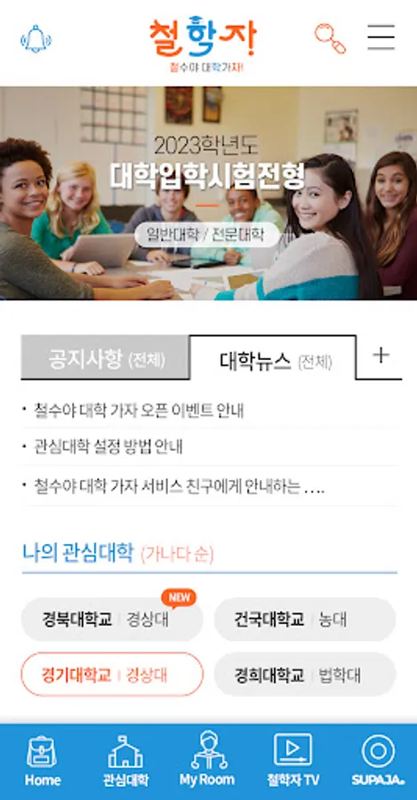 This site provides information on entrance exams and school information for universities nationwide (4-year, 2/3-year, special). You can designate up to 16 universities of interest for each member and receive various information about the university, such as information about the university entrance examination, events, and events. You can also receive accurate university information through 1:1: Inquiry with university staff and current students.