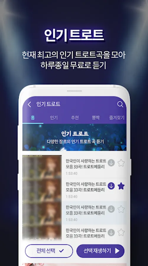 Pongjak Trot is a completely free trot app developed so that any Korean citizen can easily listen to the trot they like anytime, anywhere.