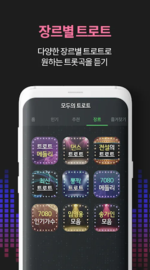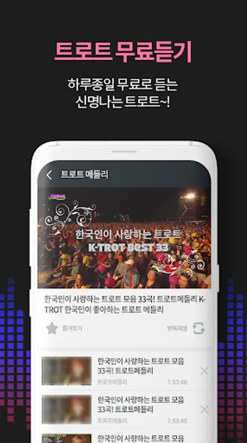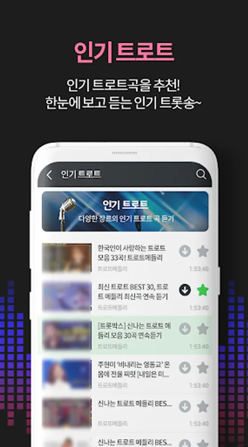 You can listen to the latest popular trot songs and songs at any time in high quality.