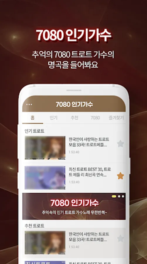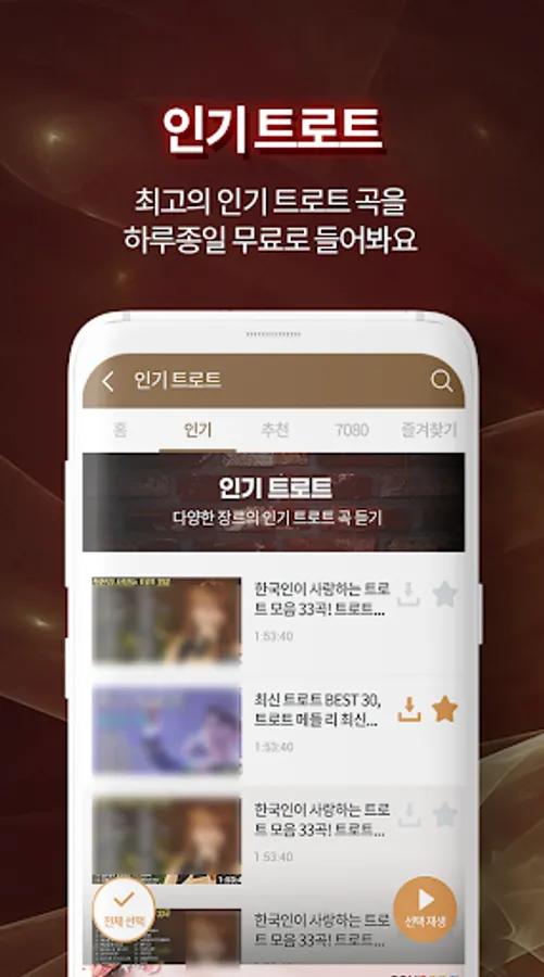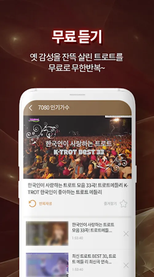 7080 Popular Singer Trot All revenue from YouTube viewing from the free listening app belongs to the video registrant.