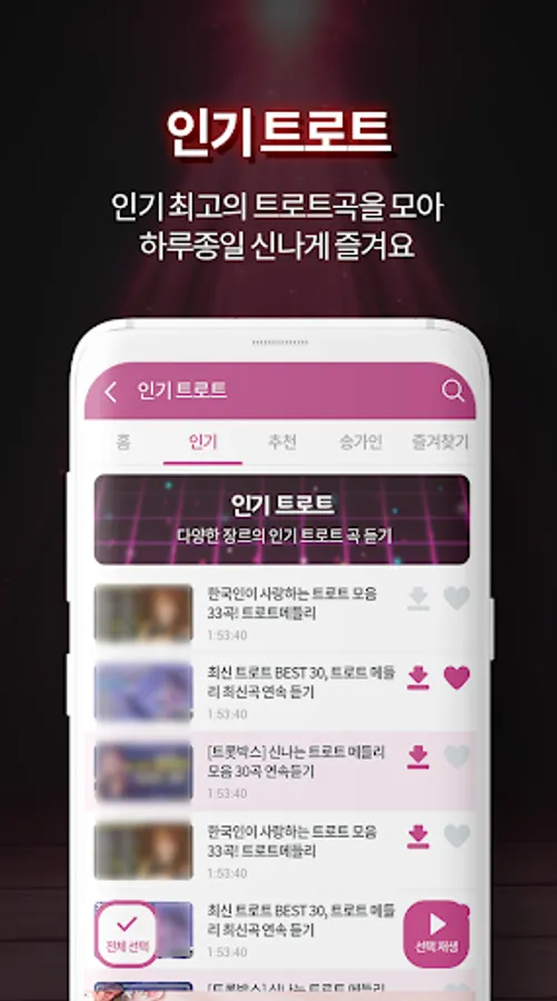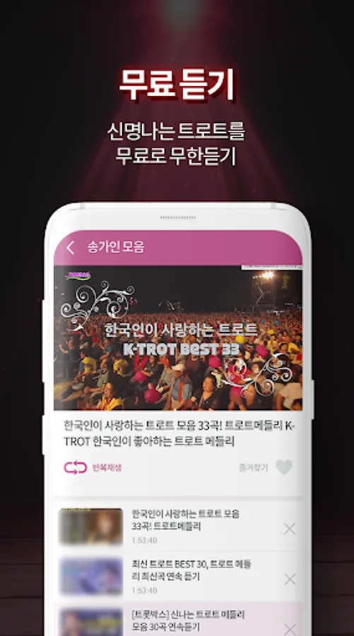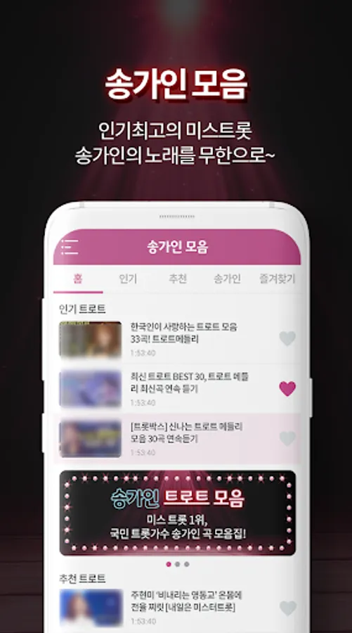 Enjoy Song Ga-in's trot completely free from the Song Ga-in collection that plays even when the screen is turned off.