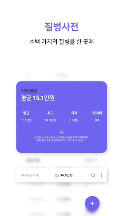 -Provides detailed information of hundreds of diseases and estimated medical expenses. Based on the actual receipt, we will inform you of the medical expenses in the surgical/non-surgical section.