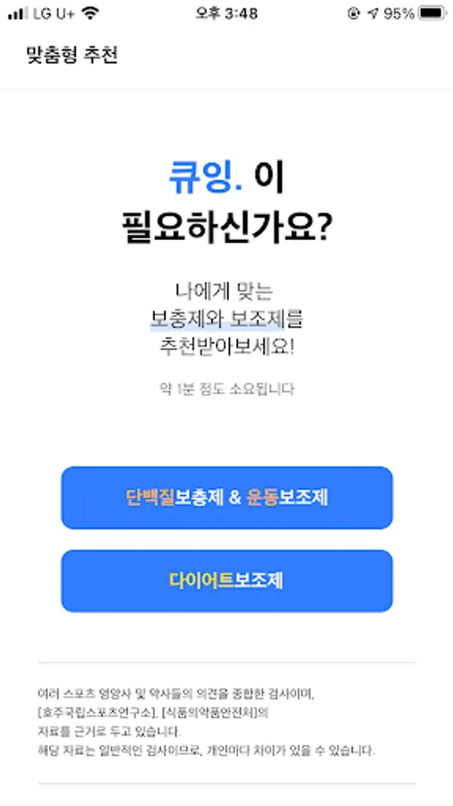 큐잉 - 나에게 맞는 보충제 추천 (데모) Screenshots