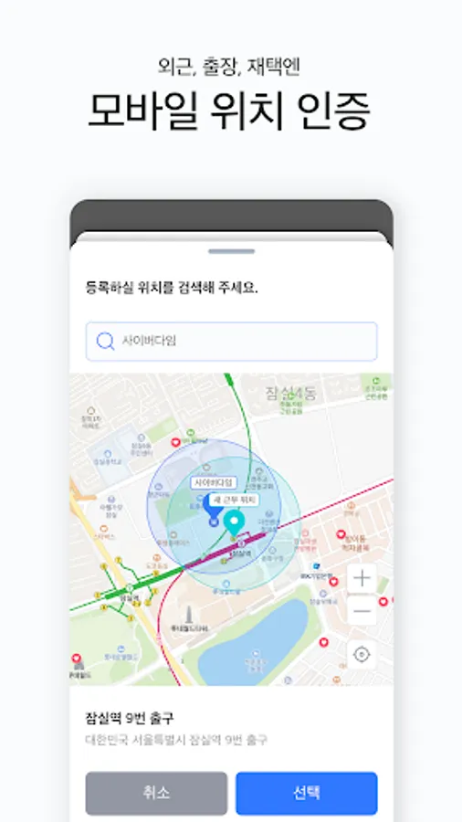 - When using the option to allow work at a fixed location, the user's location information is checked through the GPS and WiFi authentication methods of the mobile app. Even when the app is closed or not in use, it collects location data to check whether you enter or leave a designated location.