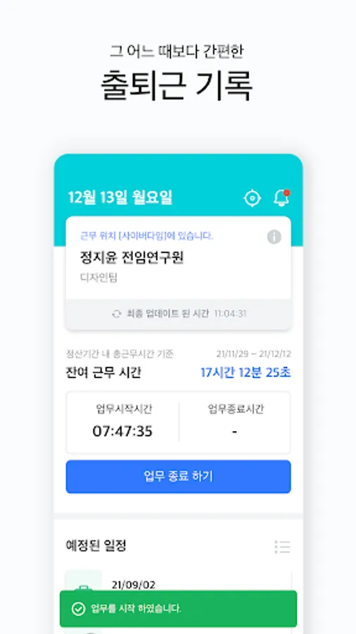 You can easily record your commute on mobile and PC, and manage working hours, overtime, vacations, etc. according to 52 hours a week.