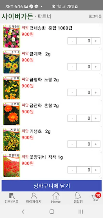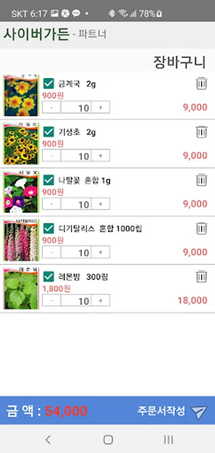 사이버가든 대리점 꽃씨주문 전용앱니다.
