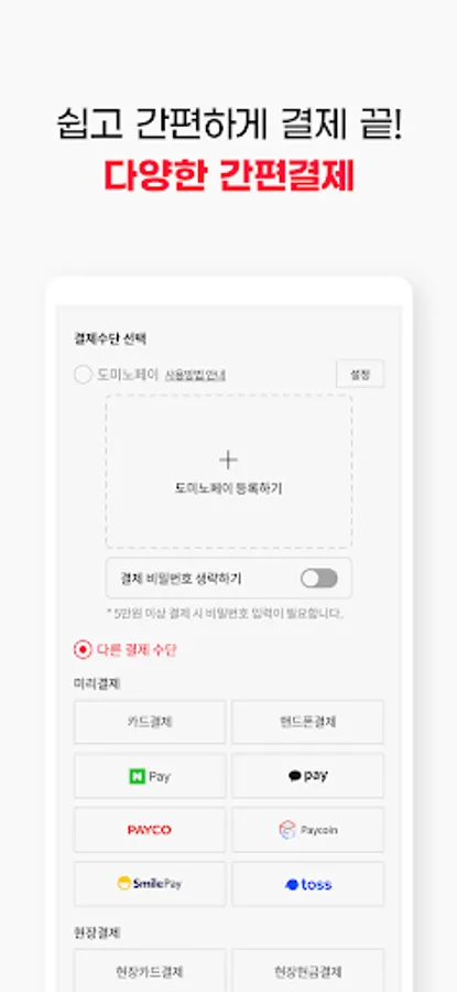 Various payment methods, if you want to use it again next time? If you register as a basic payment method, you can use it next time.