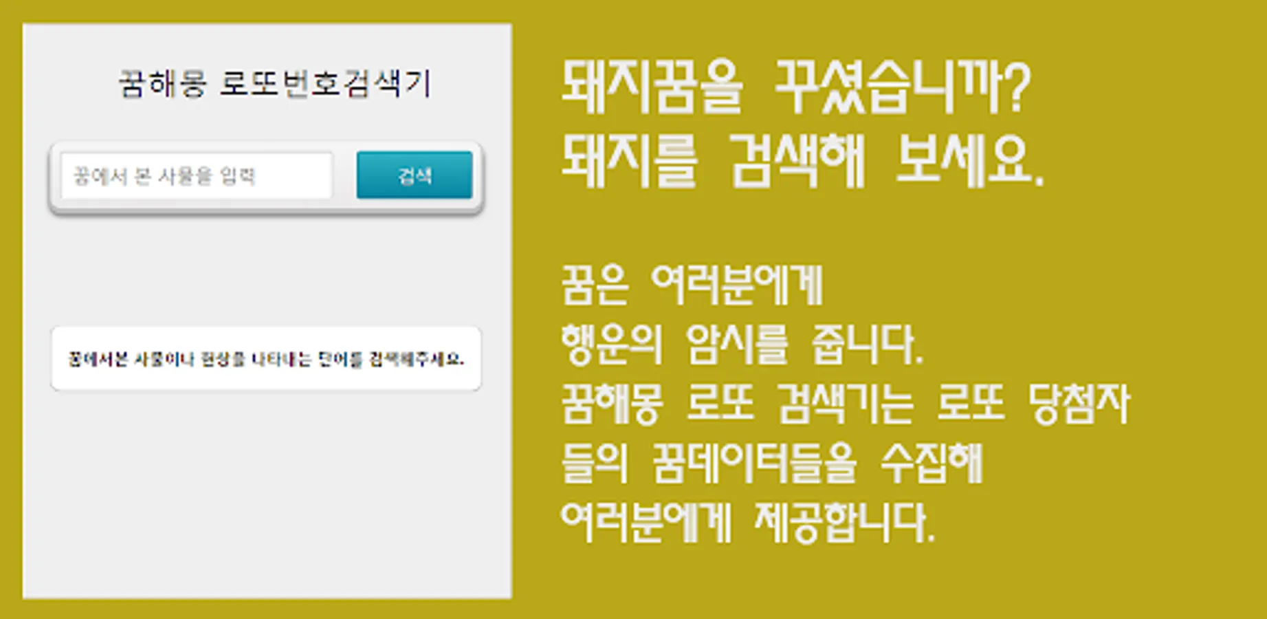 When you enter the thing you saw in your dream, the related LOTTO number is output.