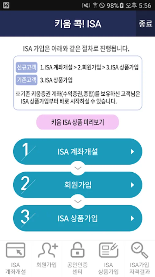 The beginning of the personal comprehensive asset management account (ISA) is “Kiwoom Kok! ISA” app.