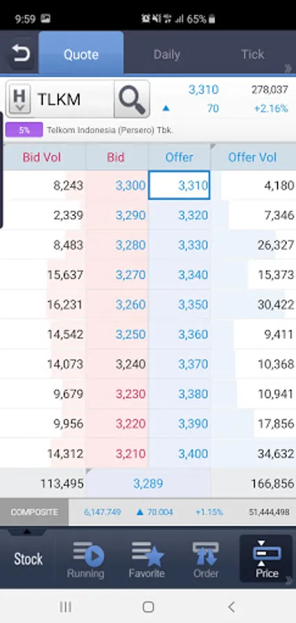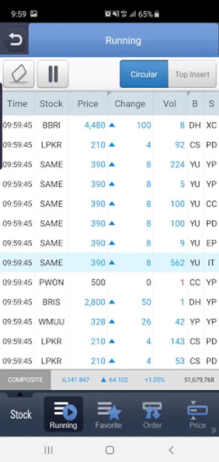 Running Trade, Quote, Matched dimana semuanya real-time.