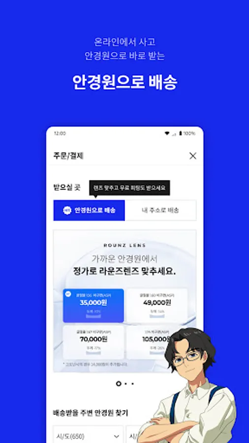 Visit our rounds partner opticians in over 150 locations nationwide. Pick up the product and receive special services unique to Lounges customers, including professional care such as optometry and prescription lens customization, as well as discounts on lenses.