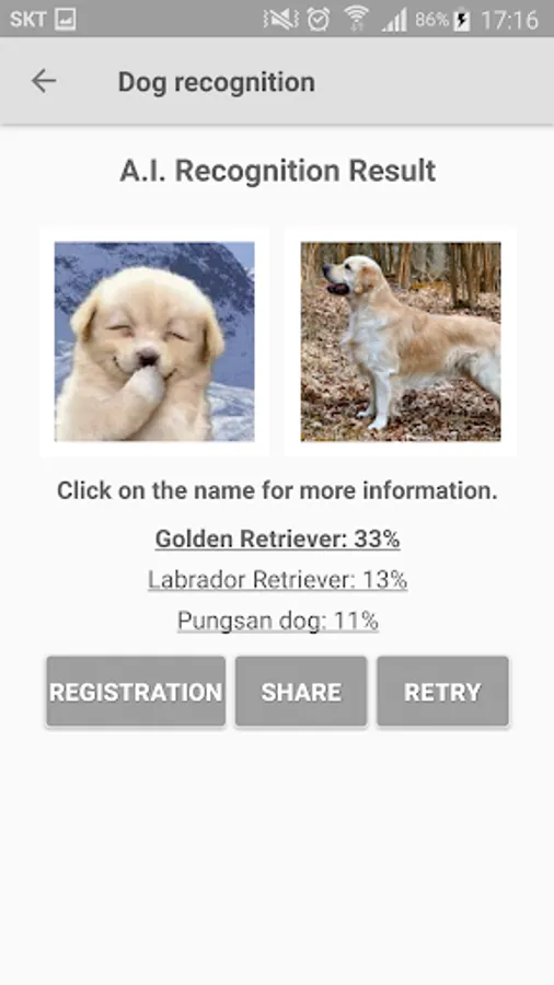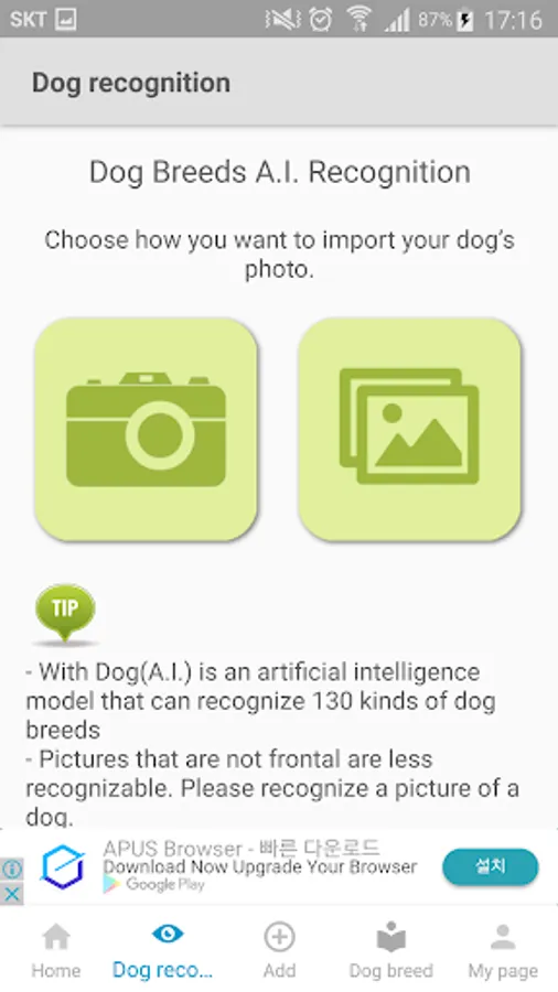 The only way to recognize a dog is by selecting a dog photo from your camera or album.