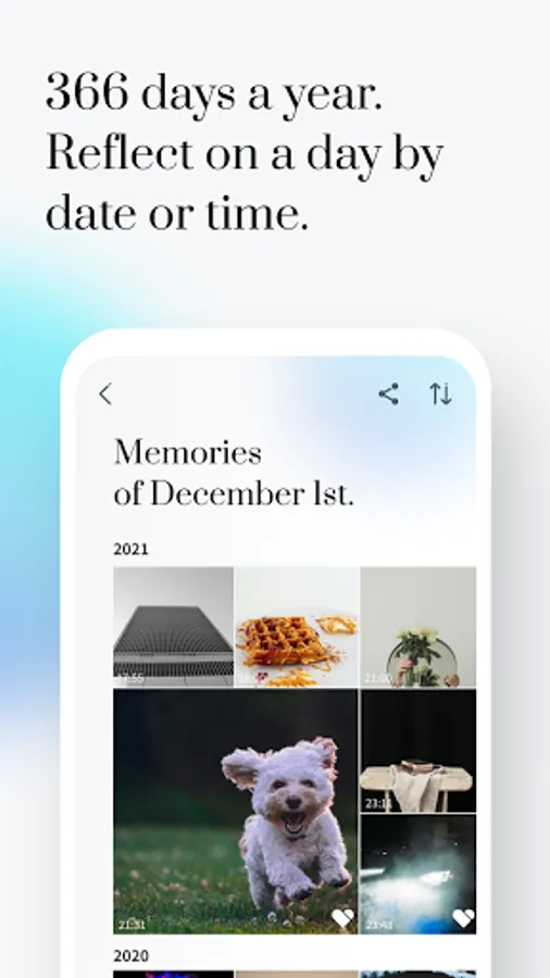 If you look at the album in 366's way, you can find unnecessary pictures that you couldn't delete. Organize unwanted photos easily anytime in the app!