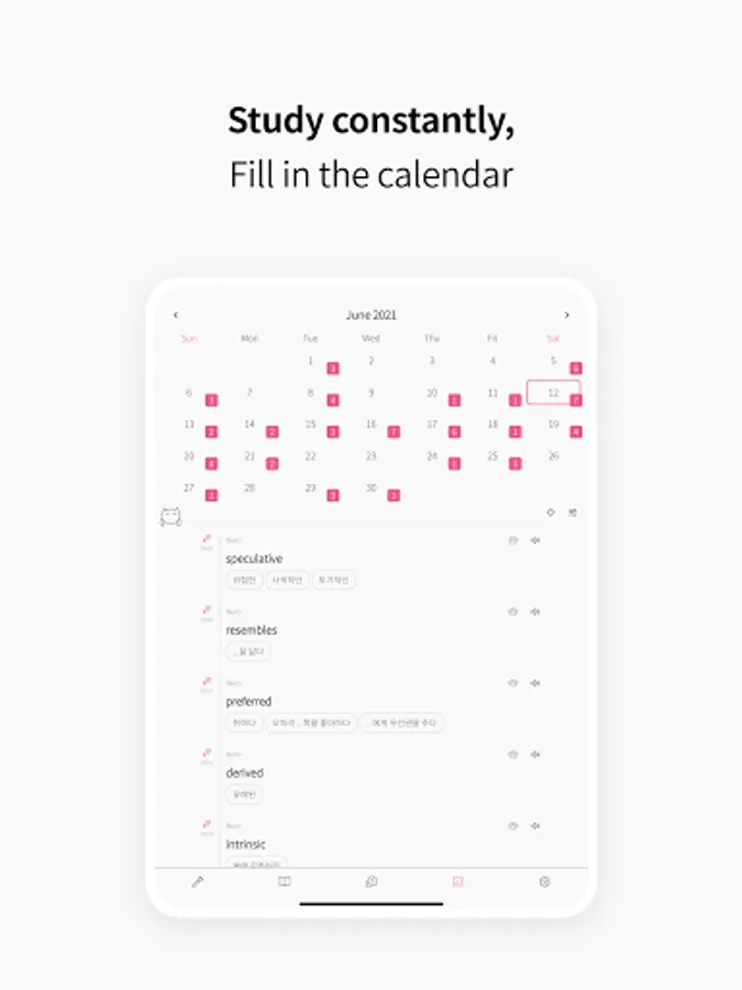 • You can make a schedule by specifying how many words in the vocabulary to study per day.