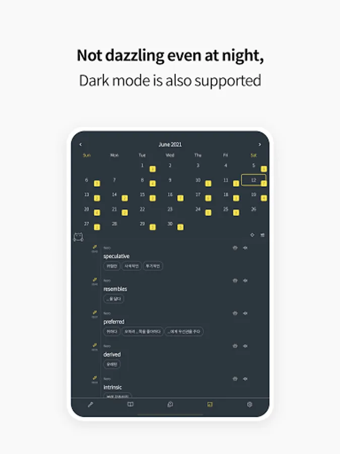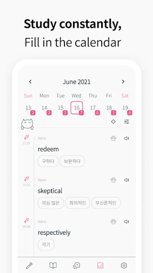 • According to the learning schedule, you can select only the words you want to learn today and take the quiz.