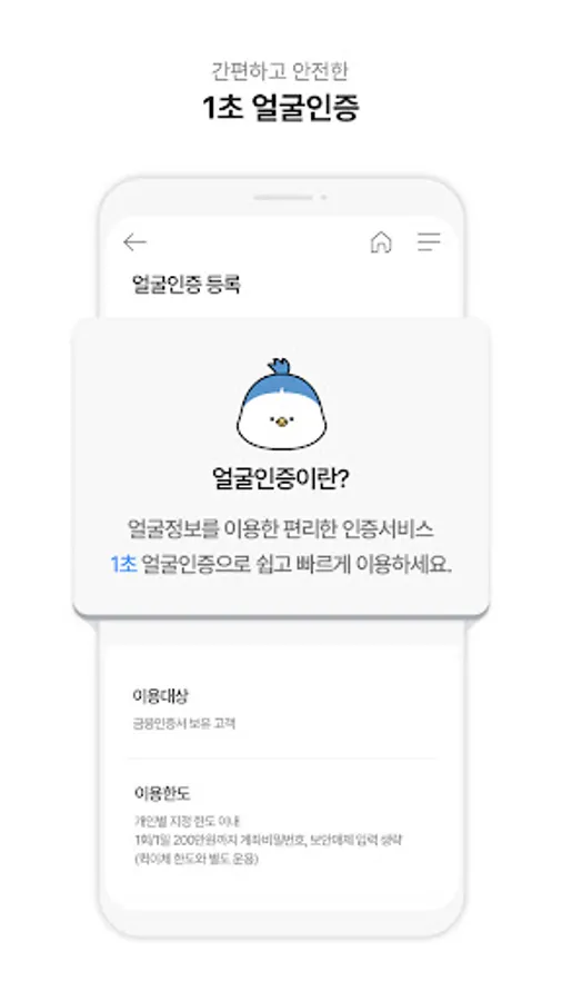 - Easily and quickly log in and transfer small amounts with a simple password and bio information without certificates or security media